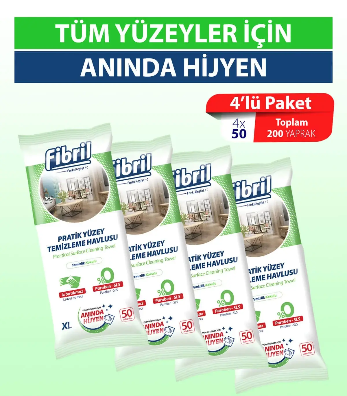 Paraben ve SLS içermeyen özel formülü ile güvenli kullanım sağlayan Fibril yüzey temizleme havlusu, tek yaprak ile kolay temizlik sağlar.