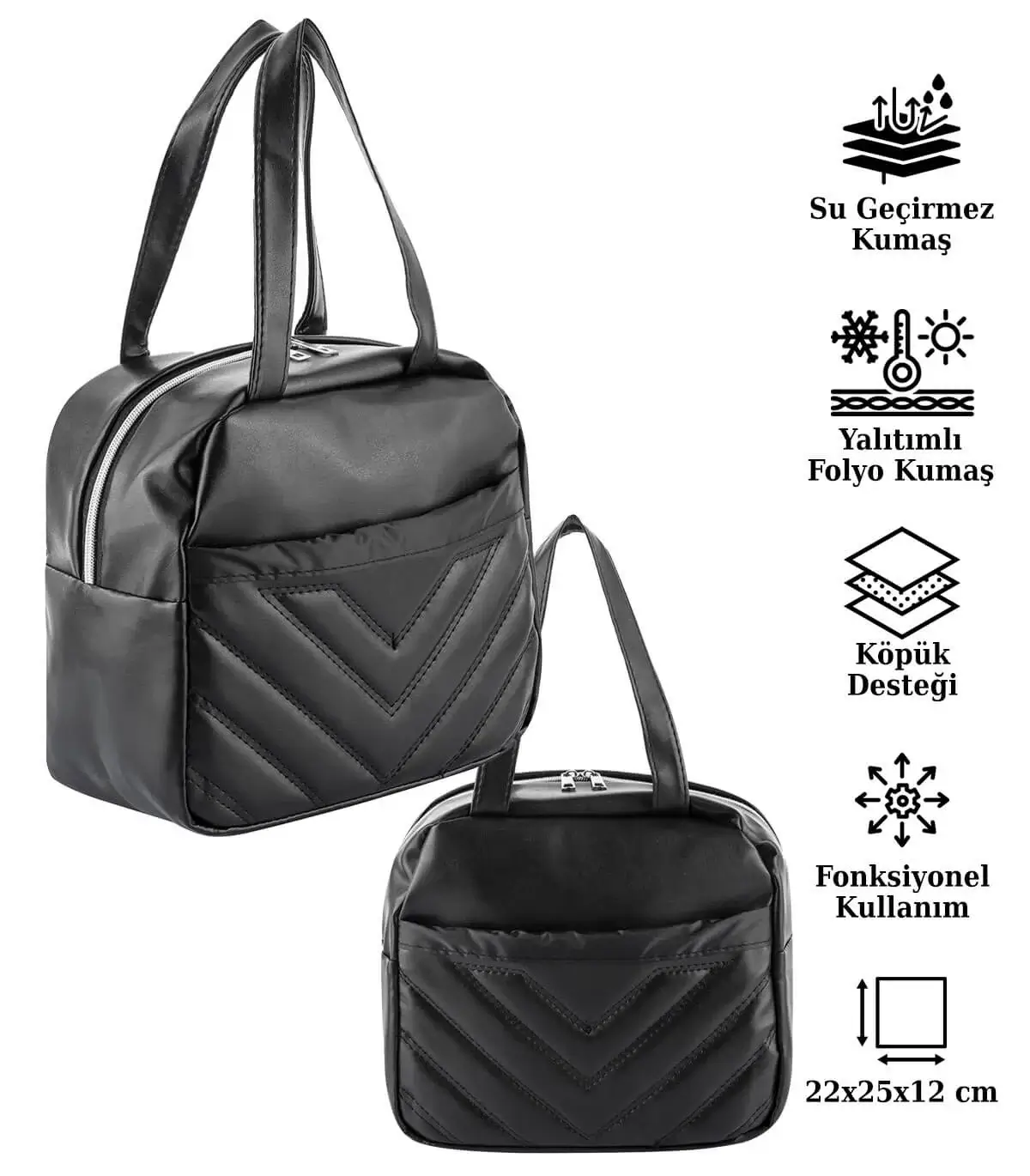 Kamp Piknik Termal Soğutucu Yalıtımlı Buzluk Termos Çanta 10 Lt – 970 Siyah Suni Deri